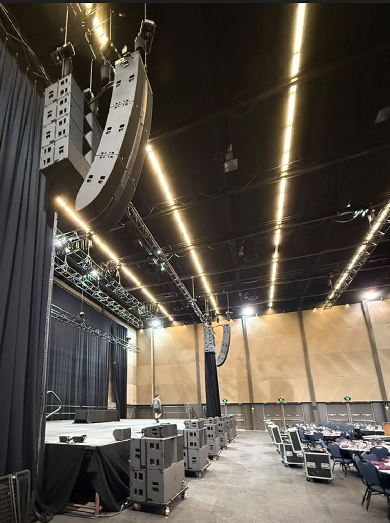“The L‑Acoustics L2 system was a real pleasure to install and commission for the AEC Theatre,” agrees Declan. “The unique challenge of this venue is its flexible configuration; the stage position, and therefore the PA coverage requirements, change depending on the size and type of show. The motorised bleacher seating can be deployed for seated events or retracted entirely for standing shows. L2 provided an effective solution due to its high degree of control across the array, with full DSP control of each element. This allowed us to maintain consistent coverage and tonal balance across multiple room layouts.”