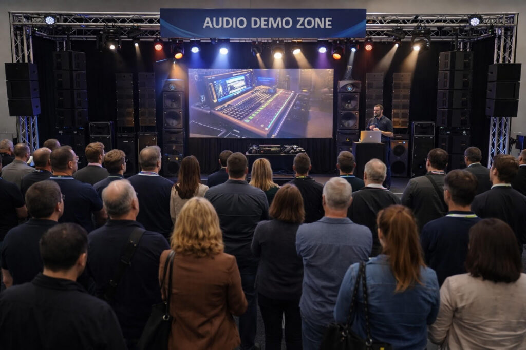 The big buzz this year are the two new Interactive Demo Zones. Scheduled sessions all day cover audio, vision, and lighting
