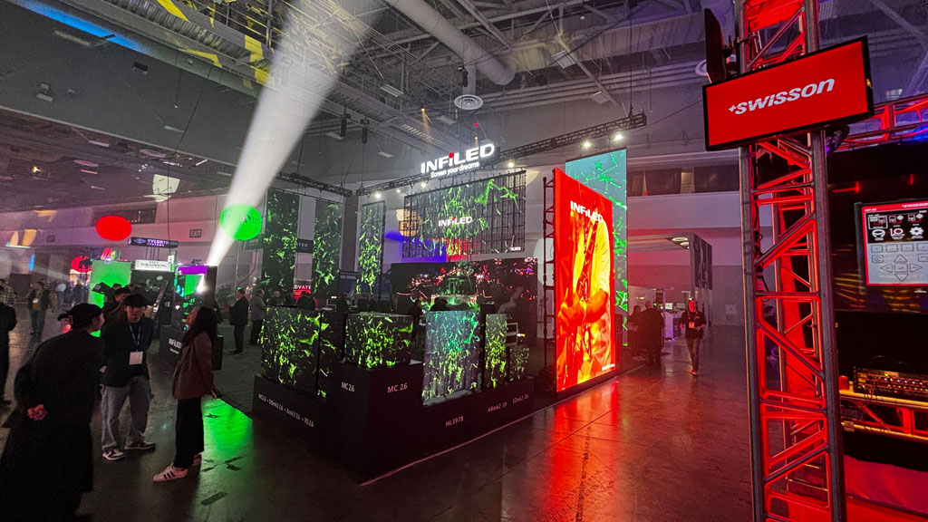 ROE Visual showcased the Omni Tube, a 360-degree video tube with a wide range of mounting options, and the Vanish Air, a 6.9mm-pitch LED product boasting 95% transparency. Its immaculate cable management and lightweight design made it one of the most impressive transparent LED solutions on the floor.
