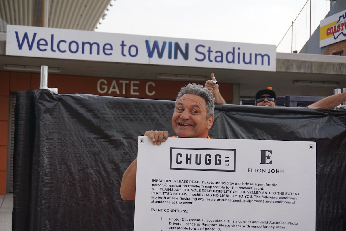 “They started the build on Tuesday, you’d better get down there soon,” says the email from Michael Chugg, co-promoter of Elton John’s regional Australian tour in October.