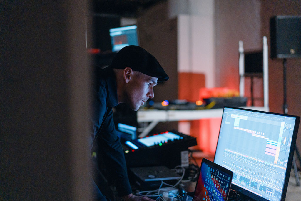 The proceedings of the evening were split in two; the first was a ritual immersive art dinner, during which Benjamin performed his immersive soundscapes as a backdrop to conversations around fundraising for his studio. The tables were then cleared, and the space became an underground ‘art rave’, also spatialised in L-ISA. “I performed and did sound design for three hours for the dinner, then opened the art rave with a further ambient live performance and artist talk to give further context to the gathering. After this I finally took a little break,” recounts Benjamin. “The entire night is spatialised from start to finish, and the engineers worked very hard to create an incredible spatialised environment based on my vision.”