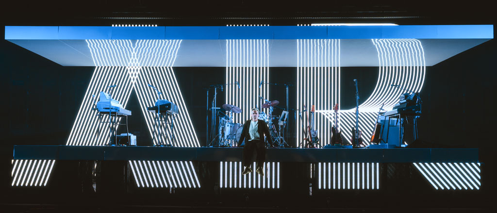 Not only did the audio reflect AIR’s exacting attention to detail, the visual spectacle of the show was also breath-taking. The band performed every night inside a large cuboid, 14 metres wide, four deep and three high. Made with clean, sharp lines of plexi-glass and metal, the surfaces were highly reflective. It was a challenging space to work with and one that focussed Vouillon’s mind immediately.