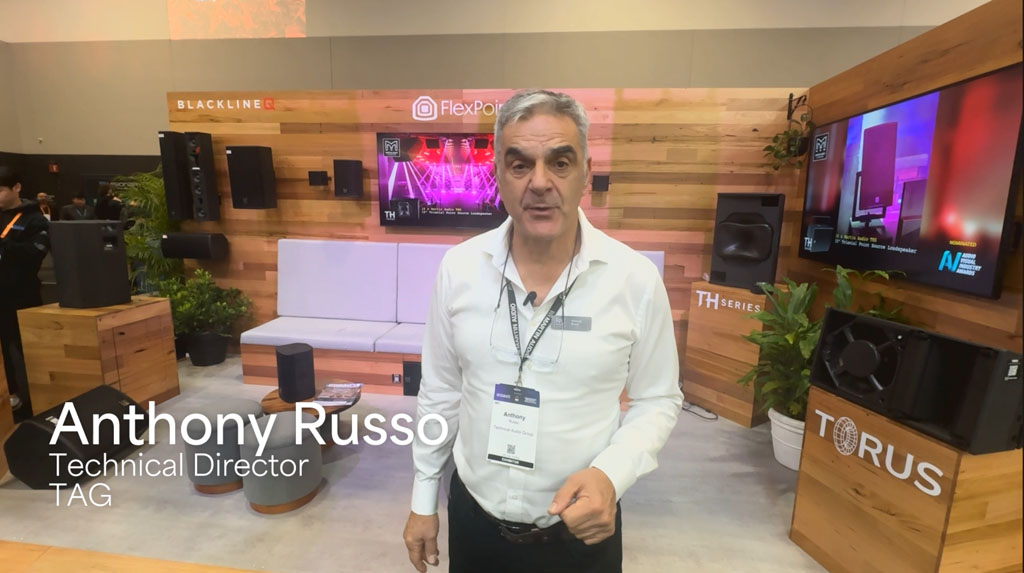 Martin Audio had a great Integrate, taking out an AVIA award. TAG’s Tony Russo shows off the range on the Martin stand, including their $10,000 giveaway to whoever could change the directivity on a FlexPoint speaker the fastest!