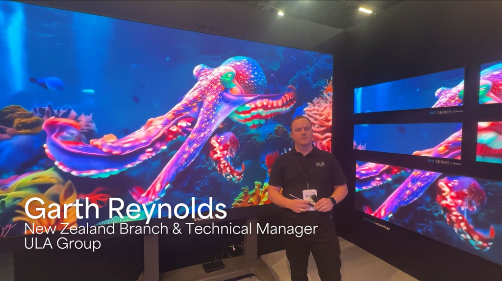 Garth Reynolds, New Zealand Branch and Technical Manager at ULA Group introduces Orion, VuePix’s new all-in-one LED solution. There’s a 110” model with 1.25mm pixel pitch and a 135” with 1.5mm pixel pitch. It comes with a wall mount bracket, built-in speaker and camera, plus options for trolley mount. It’s fully touch enabled and has embedded whiteboarding running on Android.