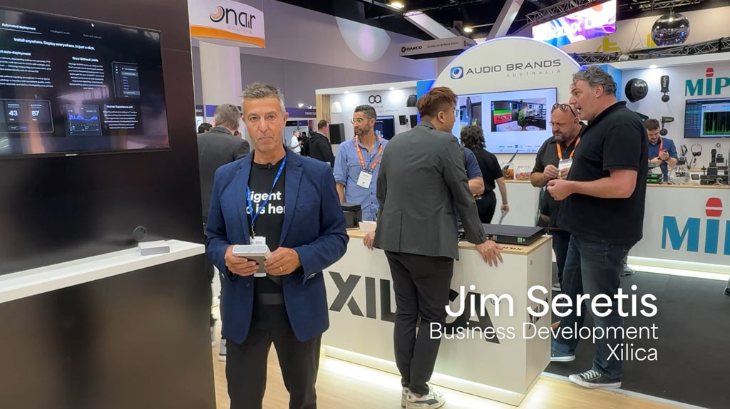 Jim Seretis, Business Development for Xilica, showed off their new collaboration tool, RoomHub. It’s got AI-driven deployment on board, making installation and integration faster and easier than ever. RoomHub instantly maps your network, discovering ceiling microphones, PTZ cameras, amplifiers and peripherals. Link devices to rooms with a single click. Then AI AutoDeploy takes over, listening, measuring room acoustics, and tuning your system automatically with AI-driven EQ.