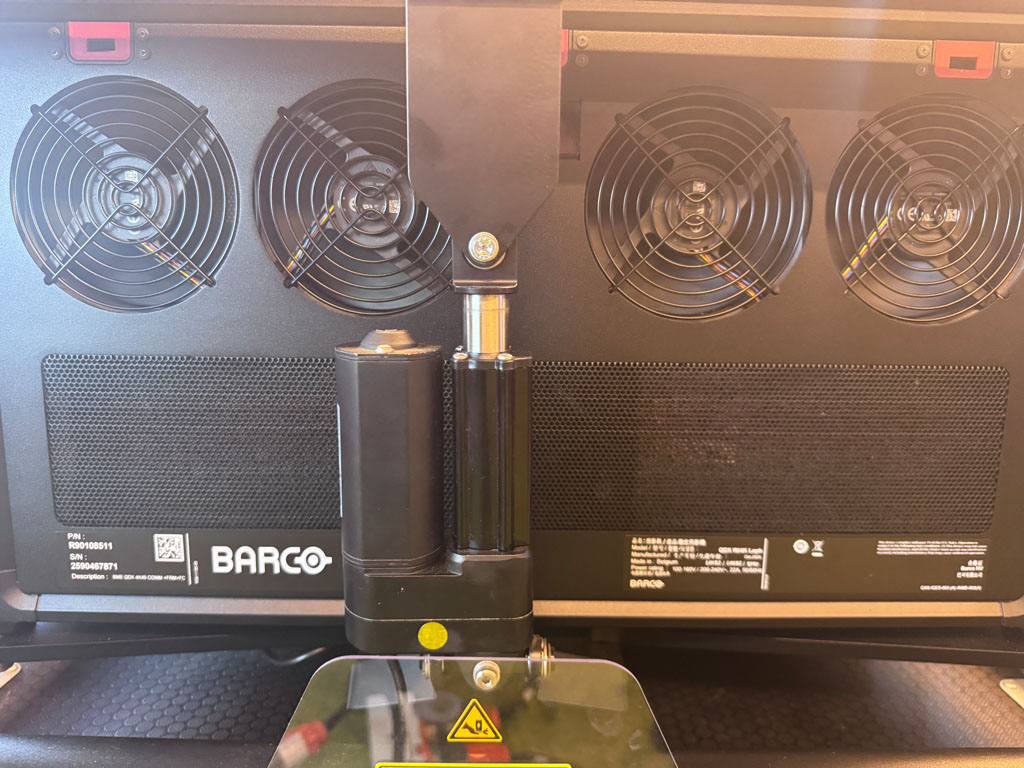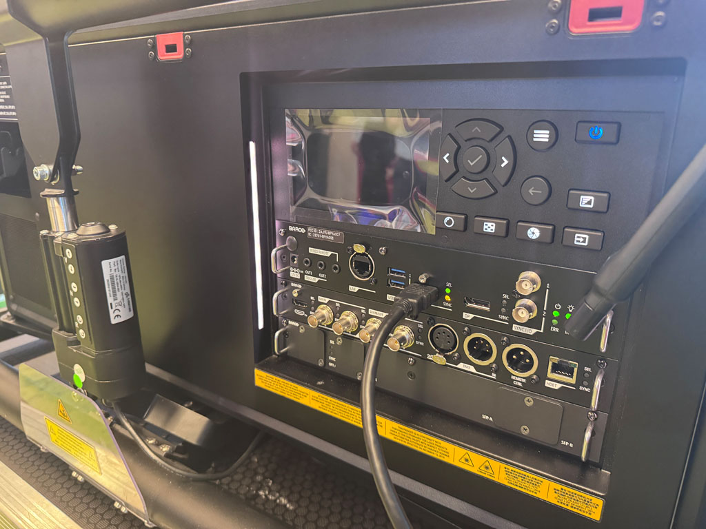 I had a look at the QDX 4K45, a 45,000 lumens, 4K UHD, 3-chip DLP laser phosphor projector. If you buy it kit format, it comes with a hydraulic motorised frame free of charge. The Connected variant, which is what Barco sell in Australia, comes with 5G for remote control and monitoring via Barco’s Insights Management software suite. This is vitally important when these projectors are out working on long running events without operators, like Vivid, or immersive installations. Adding to the remote features are camera and laser-based focusing systems, and shutters.