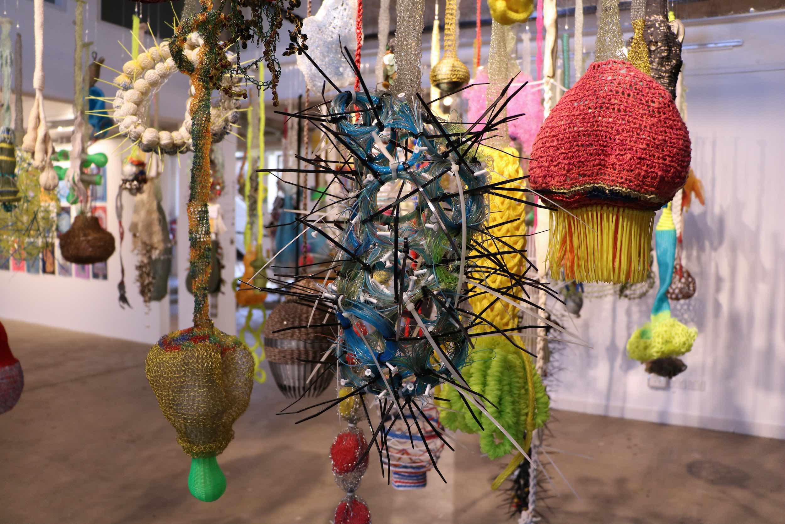 “In the Mind Garden exhibition, my sculptures are hand-woven structures that transform everyday prosaic materials into biomorphic objects of beauty and intrigue.