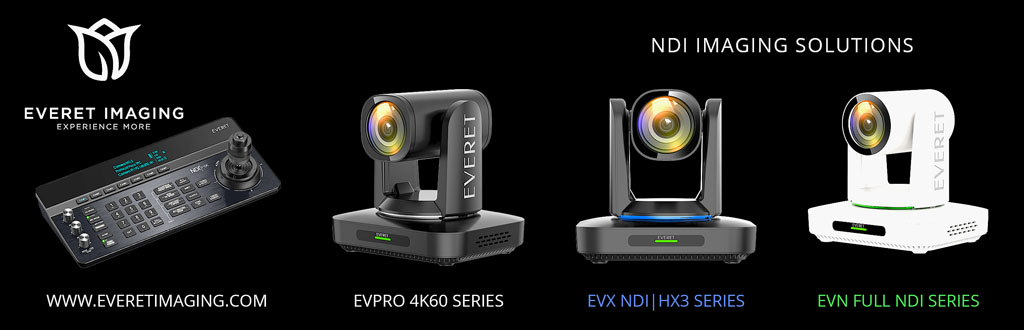Everet offers a full range of high‑performance, professional grade cameras suitable for broadcasting, houses of worship, government and corporate AV, with in‑built advanced AI auto‑tracking and robust NDI streaming capabilities without requiring extra licensing.