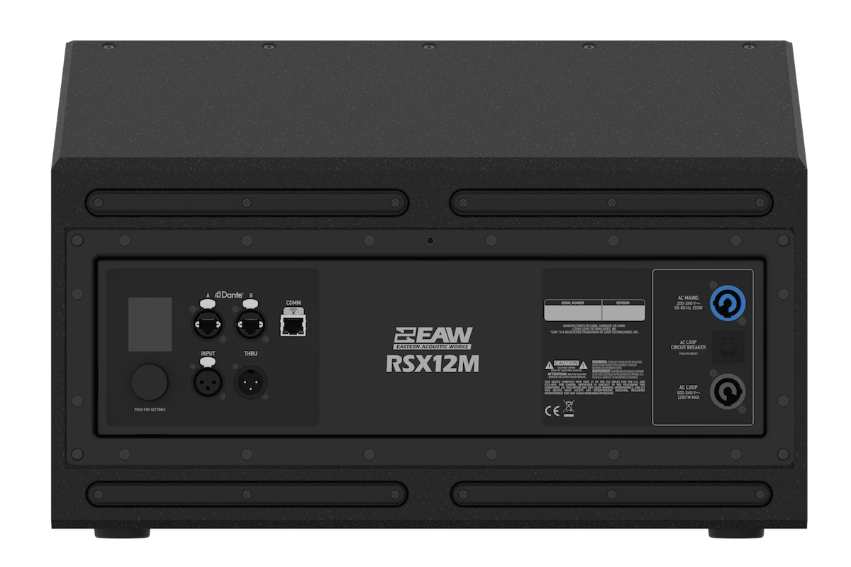 EAW’s Radius Series is a total connected PA solution. It includes a line array with flyable subs, and point source mains, fills and a sub. The whole range is powered, comes with Dante built-in, and is made to be designed, predicted, controlled and monitored wirelessly via EAWmosaic, a comprehensive iOS app. The RSX12M adds a monitor wedge to this line-up.