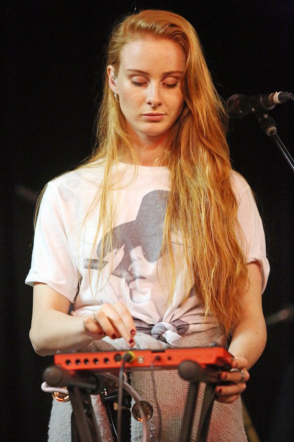 Front of the stage, is an Akai MPX16 which has become quite a feature in the Vera Blue set, and something that Celia has really taken to. This small touch pad is armed with 16 velocity pads which are midi synced back to an Ableton drum rack loaded up with vocal samples and synth sounds that have been taken from the original recordings.