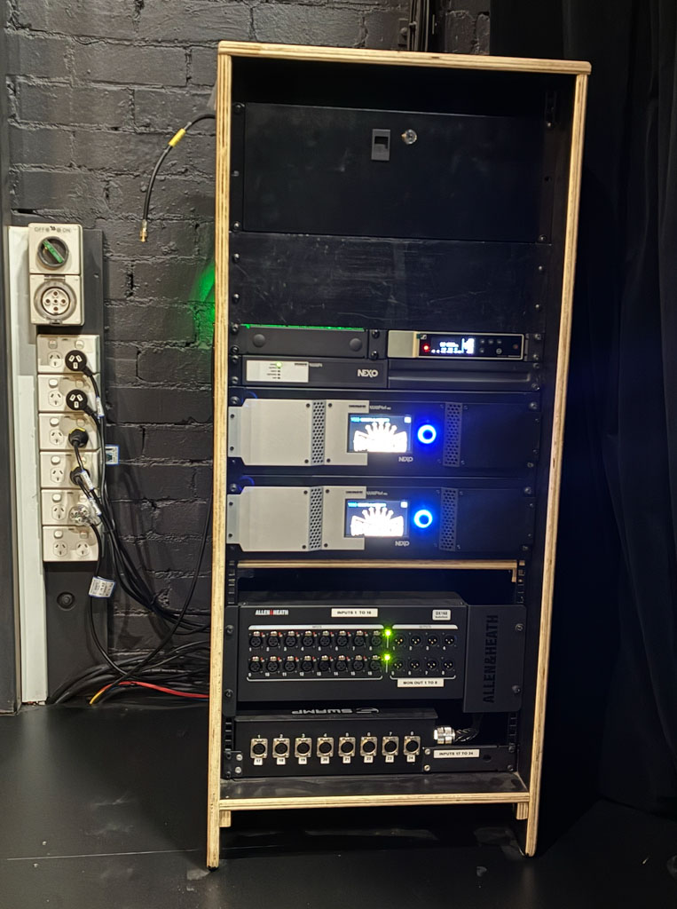 Jim assessed the state of the venue to determine what they needed. “The only PA system in there was a homemade left‑centre‑right‑surround movie system,” recalls Jim. “It had those huge old subwoofers with the dust caps missing off the cones, probably from the 1960s. We started talking about a bit of extra lighting and a pair of decent PA speakers. Then the project just grew.”