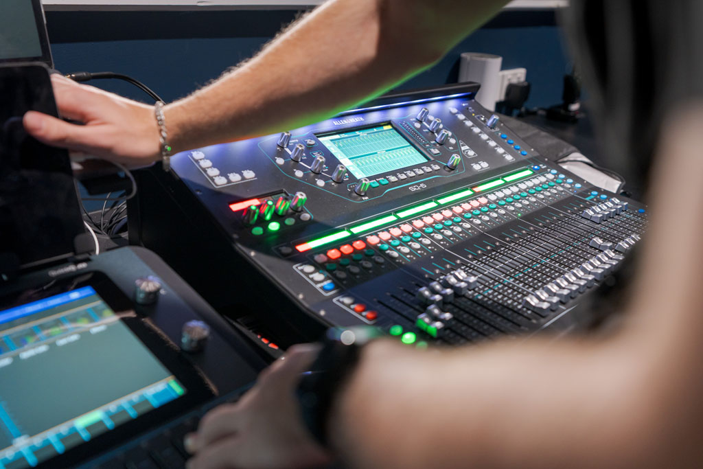 Working in a heritage building to retrofit 21st century technology can be immensely difficult, but Jim and his team were in good hands. “We had a really good builder, Gary Borg, who worked closely with me and the engineer on where things could go,” conveys Jim. “I’d literally put a marker on the floor and say, ‘This is our PA hang point’ and he’d say, ‘Okay, how much weight do we need to carry?’ Then he’d work it out with the engineer and install the beams accordingly. I’d come back and my hang point would be there. It was fantastic.”