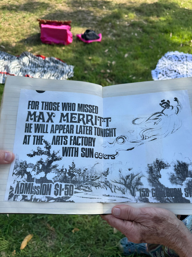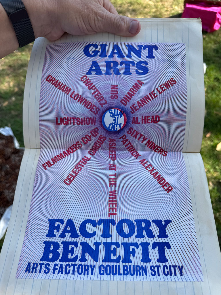 Michael Batchelor helped hose the place out, clean it up and set it running, stage with a 360-degree screen on one side, flea market on the other. A young Peter Noble (later of Bluesfest) had a stall selling juice, alongside candles and other hippie paraphernalia. Parachutes hung from the ceiling, with old rugs and cushions scattered across the floor.