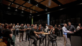 Mike Turner, Central US Sales Manager for ADJ shows off the Encore LP Lime Par Series and Encore LB15IP RGBL LED Linear Wash