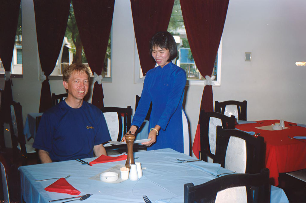 Later that evening the curtains were drawn and the lights were dimmed. The staff put on some French music and danced in a type of ballroom fashion. This was, of course, frowned upon by the government, as the French colonialists had been ousted from the country in 1954 after the battle of Dien Bien Phu, but the surreal spectacle of that night stayed with me for many years.