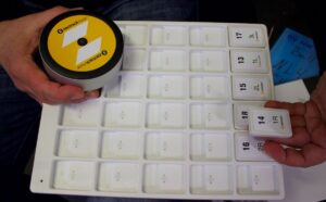 Zactrack’s transmitters, known as tags, are small rectangular boxes that transmit ultra wide-band radio in the 3-4gHz range.